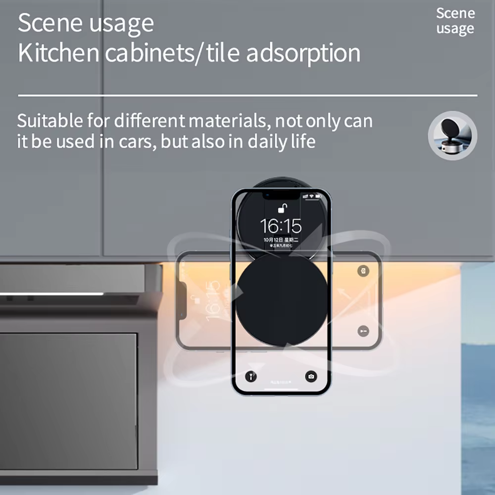 ✅ Smart Technology Integration – Features automatic air extraction for perfect surface adherence. Just press the side button for quick removal. Use it in reverse: magnetic side for metal surfaces, vacuum surface for phone attachment.